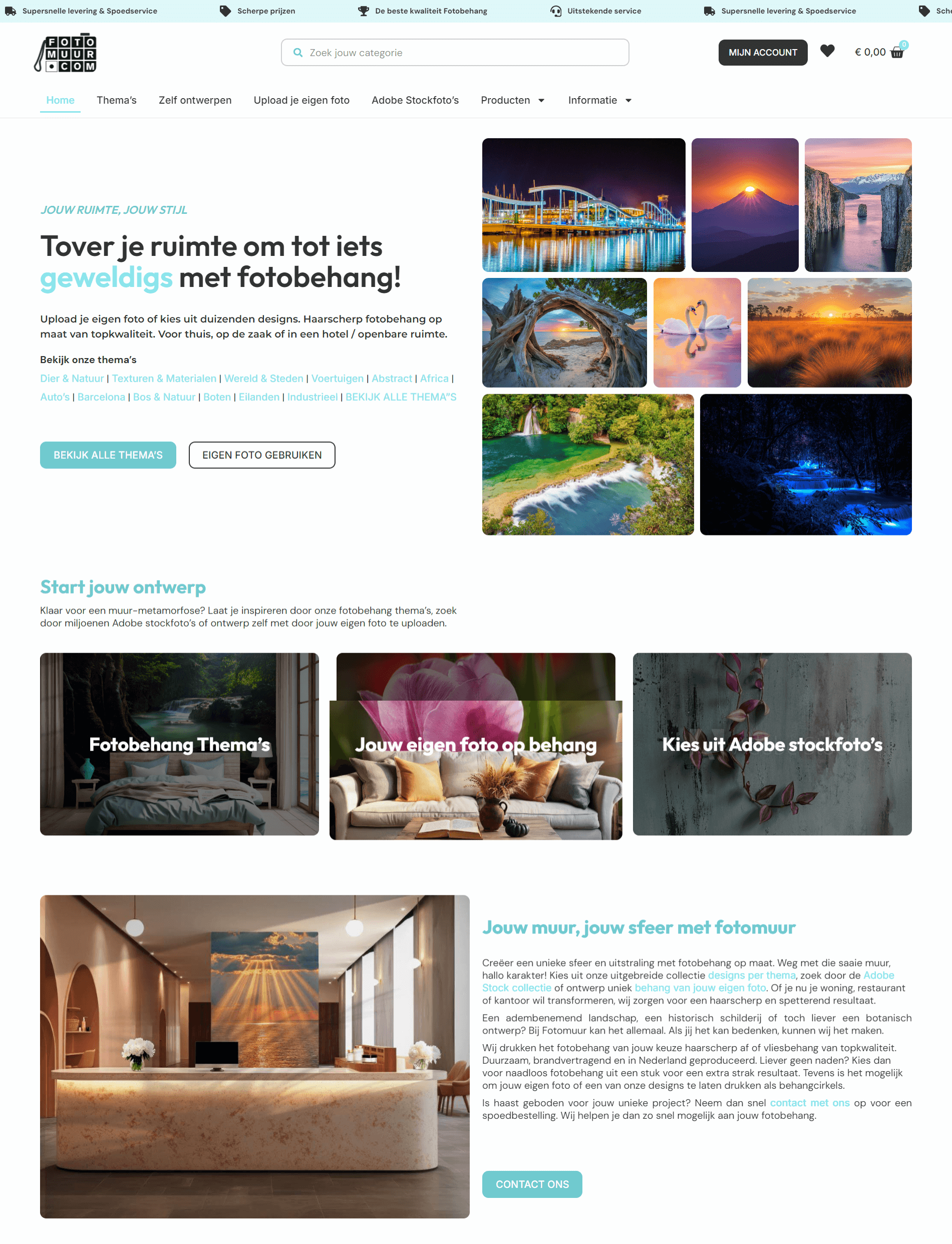 Fotomuur is een webshop gespecialiseerd in maatwerk fotobehang en wanddecoratie voor particulieren en bedrijven. Bezoekers kunnen eenvoudig een fotomuur samenstellen voor elk interieur.