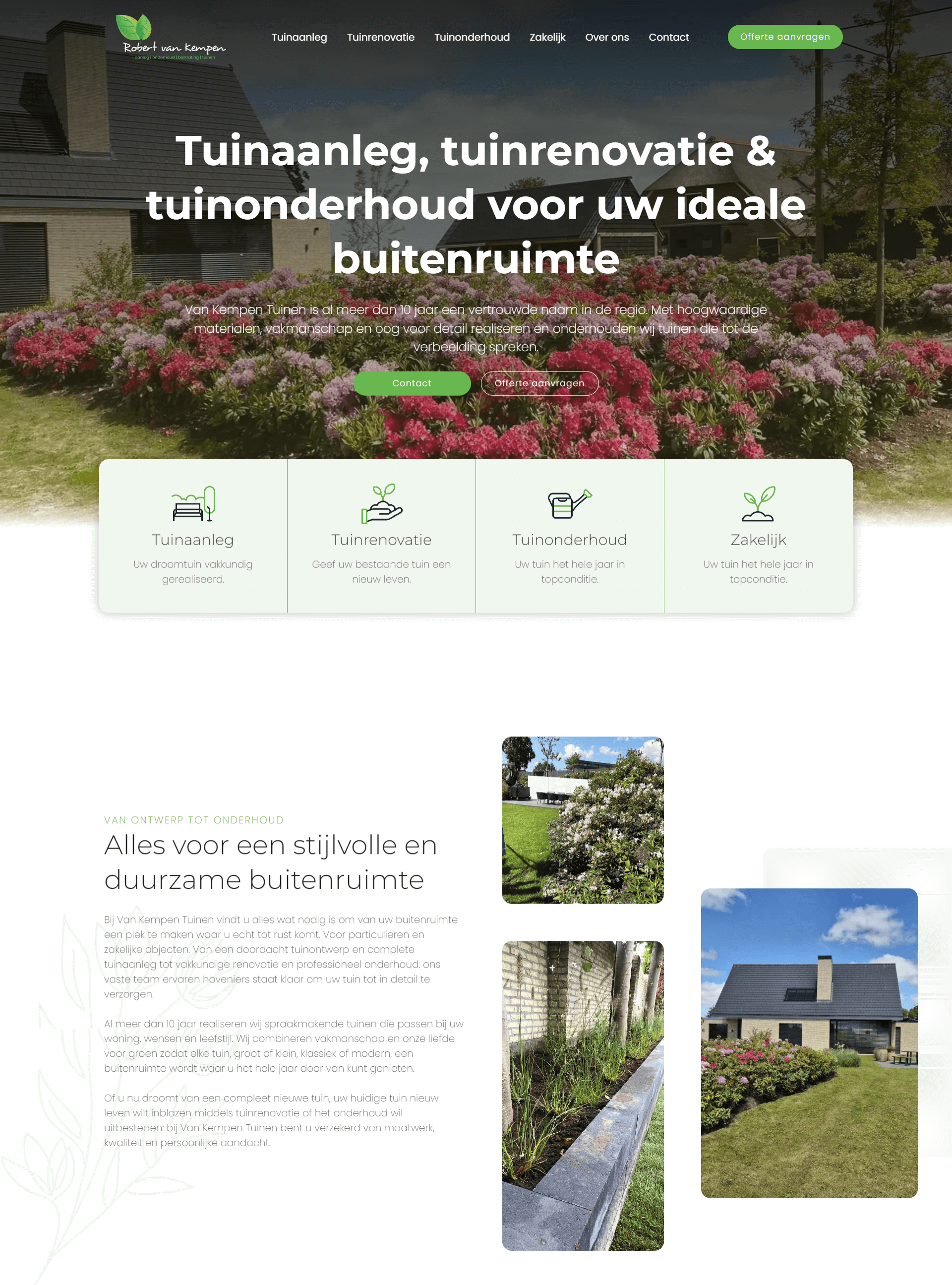 Vervolgens hebben we de informatie logisch opgebouwd rond de belangrijkste tuinprojecten zoals tuinaanleg, renovatie en onderhoud.