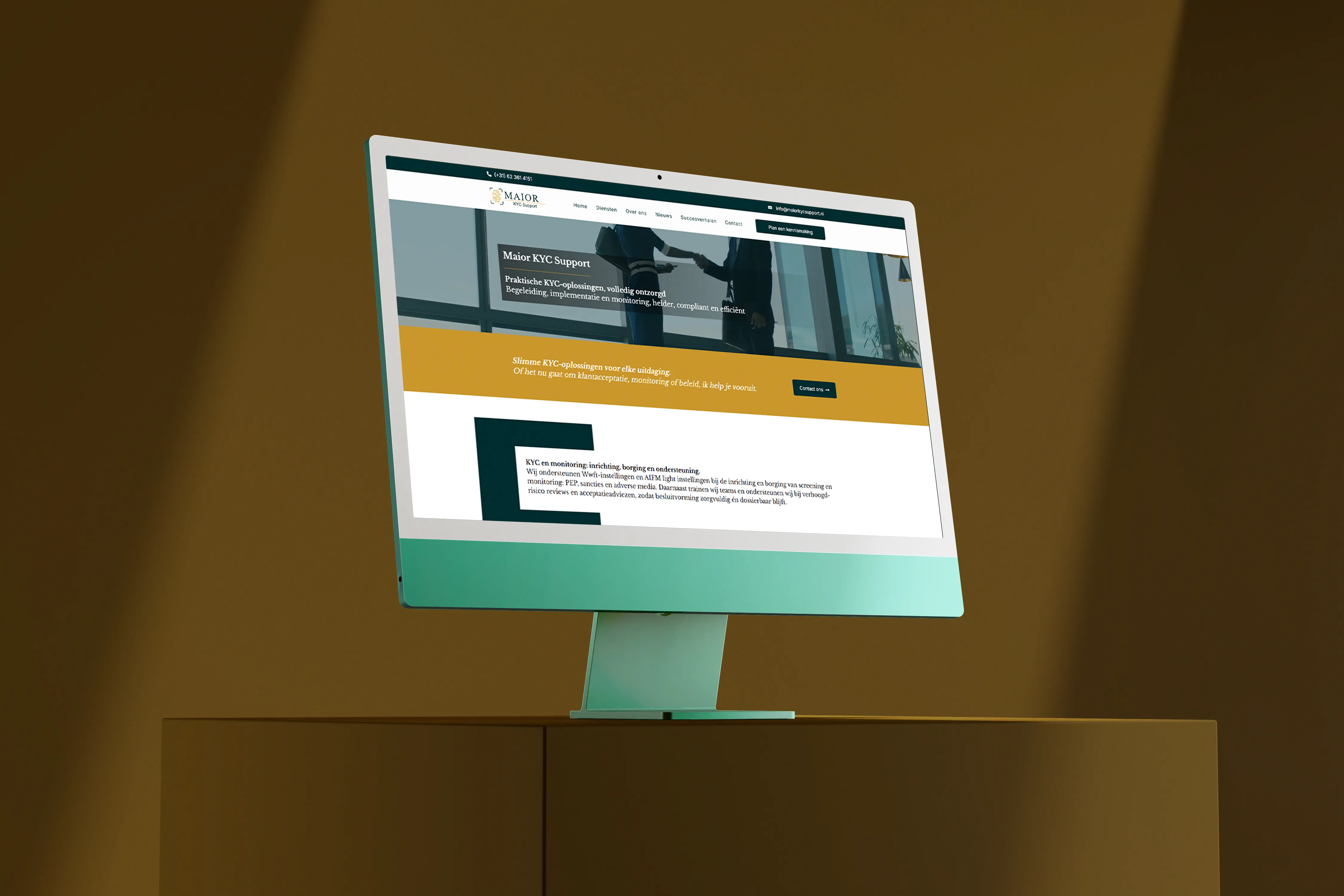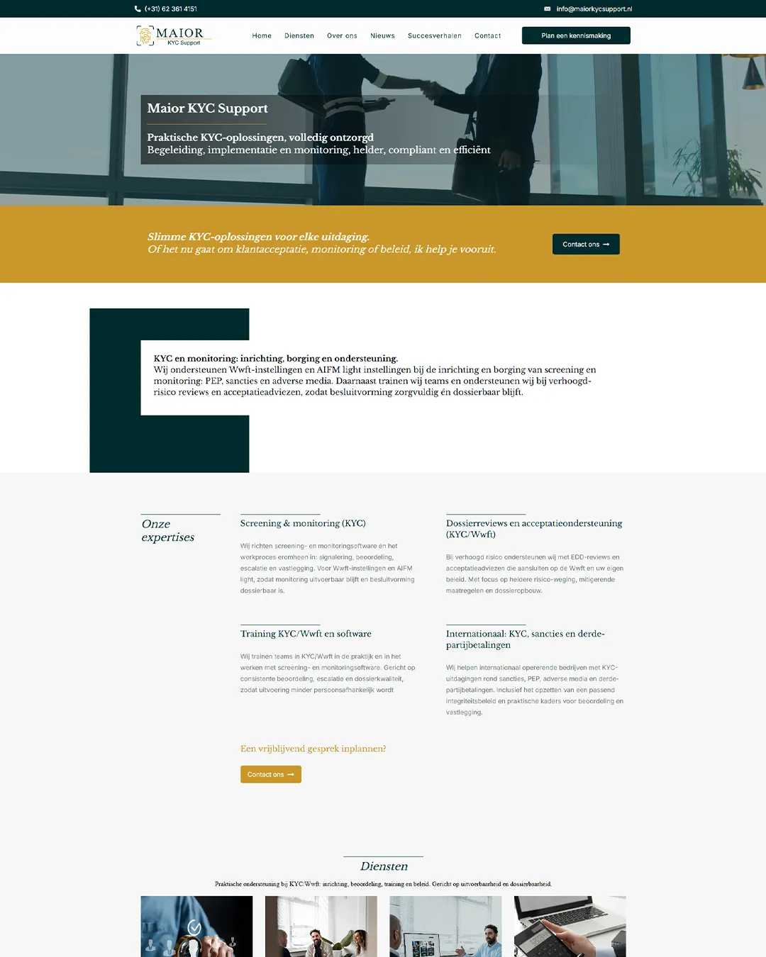 De klant waardeert de zakelijke uitstraling en duidelijke presentatie van hun diensten. Potentiële klanten begrijpen sneller hoe Maiorkyc Support kan helpen bij compliance vraagstukken.