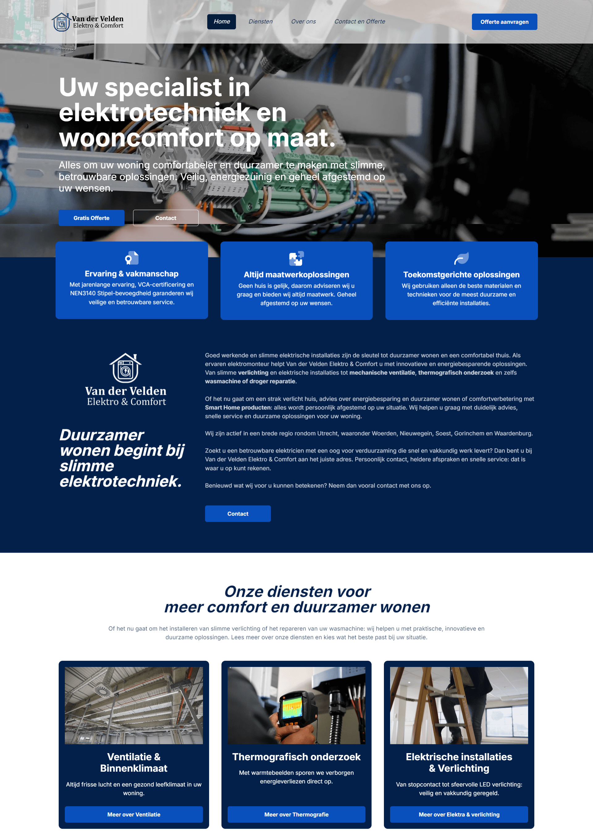 Van der Velden Elektrocomfort verzorgt elektrotechnische installaties, slimme verlichting en duurzame oplossingen voor woningen en bedrijven. Het bedrijf staat voor kwaliteit, betrouwbare service en professioneel vakmanschap. (vanderveldenelektrocomfort.nl)