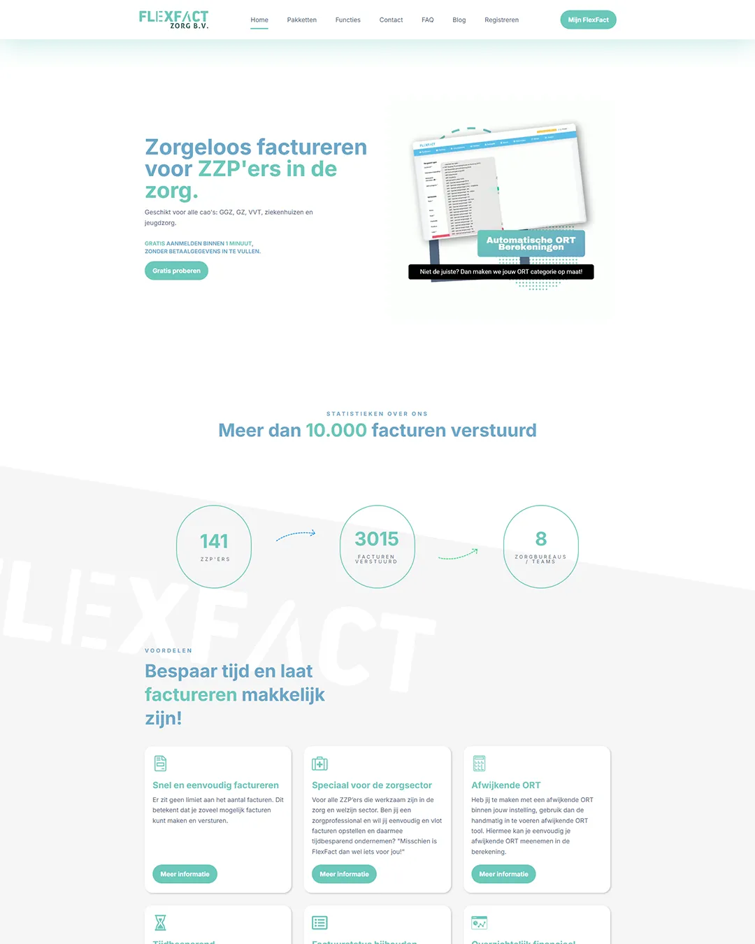 FlexFact is een facturatie- en administratiesysteem speciaal ontwikkeld voor ZZP’ers in de zorgsector. Het platform helpt zorgprofessionals eenvoudig facturen maken, uren registreren en hun financiële administratie overzichtelijk houden.